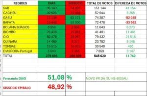​Guinea-Bissau: Fernando Dias in the head with 51.08%, Embaló in the heel with 48.92%