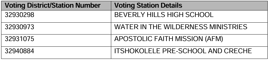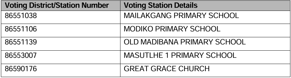 Voting stations will open from 08h00 to 17h00 to allow all eligible voters to register and for current voters to check their registration details and to provide/update address details where necessary.