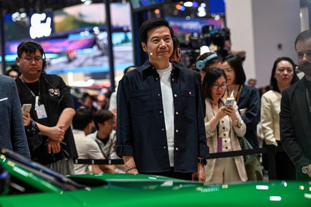 Lei Jun, Chairman and CEO of Chinese electronics company Xiaomi, stands next to the Xiaomi’s electric car YU7 at the Beijing Auto Show in Beijing on April 24, 2026.